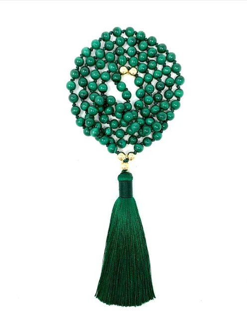 Collana Mala in pietre di malachite e oro laminato 24k.
